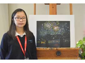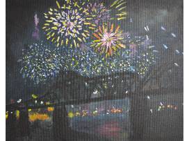 Painting of Thunder over Louisville. Painting measures 12x16 and is done with acrylics. Artist: Paige Shumate '24