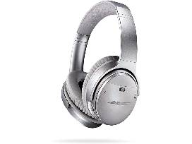 Included is a new set of wireless Bose Quiet Comfort 35 noise cancelling headphones in silver.
