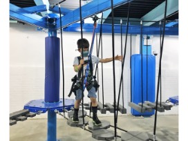 Adventure park features rope course, rock walls, roller skating, ninja course, battle beam, laser maze, slides, and arcade.