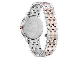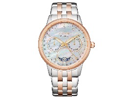 For a touch of modern elegance paired with advanced complications, Citizen's Calendrier women's watch fits the bill. It has a pink-gold-tone stainless steel bracelet and pink-gold-tone 37mm case, with a white mother of pearl three-hand dial set with diamonds. It uses Eco-Drive technology, so it is powered by light - any light - and never needs a battery. In addition to showing the month, day and date, it also keeps track of the phases of the moon.