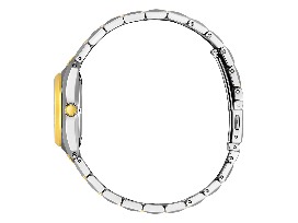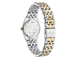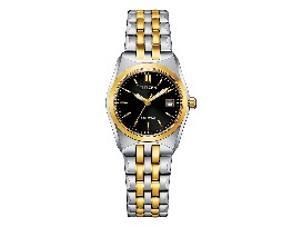 A classic timepiece is always in style in the Corso women's timepiece from Citizen. Featuring a two-tone gold and silver-tone stainless steel bracelet and case with a 3-hand black dial and date indicator, luminous hands and gold-tone markers. This elegant timepiece also features a fold-over clasp closure with hidden push buttons and is water resistant to 100 meters. If you're looking for a dress watch to add effortless style to your wardrobe, the Corso is the perfect choice. It also uses Citizen's proprietary Eco-Drive technology, so it is sustainably powered by any light and will never need a battery.