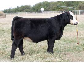 This heifer defines COOL. Absolutely choke fronted, big middled and thick. Sired by the great Simmental bull Loaded Up and out of an unregistered Red Angus donor that doesn't miss in our percentage Simmental program.