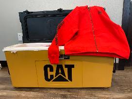 You will be ready for any event packing this HUGE 88QT cooler! This 88 QT cooler can hold 96 cans plus two bags of ice. The super thick insulated walls will keep it cool for days! The CAT cooler is made in the USA! Also included are 6 red CAT zipped hoodies.