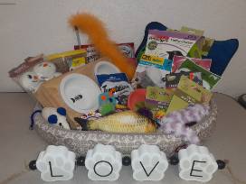 More for all you cool cats and kittens! We have a huge cat bed basket stuffed with all kinds of goodies including