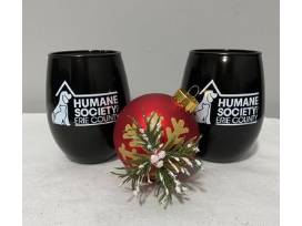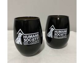 69A pair of 9 ounce, glass wine glasses. Printed black with white HSEC logo.