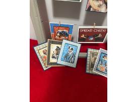 Picture frame is 28" wide and 40" high. Wooden gray frame with clips on wire for displaying photos