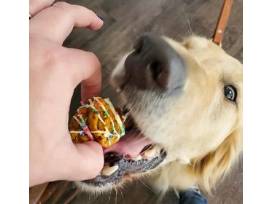Comes drizzled with dog safe icing and festive sprinkles! Packaged nicely in a bakery box. Feeds several large dogs depending on piece size. Athena and Luna approved yumminess!
