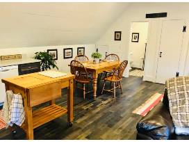 Enjoy a weekend getaway (two nights) for two adults to a charming carriage house loft located in Timber Ridge--just a 6-mile drive from the downtown area of Lexington, Virginia--home to both Washington & Lee University and VMI. The loft features a king-sized bed, one bathroom, cozy dining and living areas, as well as a full kitchen and wireless internet. Sip your morning coffee on the deck's rocking chairs or enjoy a glass of wine in the Adirondack chairs surrounding the fire pit. The property backs up to a quiet pasture offering beautiful views.