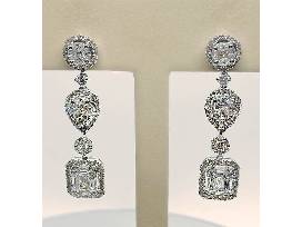 - Dazzling 18-karat white gold, vintage-inspired dangle earrings featuring diamonds weighing 2.88 total carats. Click here for a high resolution image.