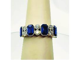 - Gorgeous 14-karat white gold band featuring emerald-cut natural blue sapphires weighing 3.19 total carats and brilliant round cut diamonds weighing .40 total carats. Click here for a high resolution image.
