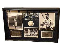 120x31" beautifully framed Hank Greenberg Collection. Known as the "Jewish Jackie Robinson". Signed baseball, photos of Hank and plaques with statistics. Comes with certificate of authenticity