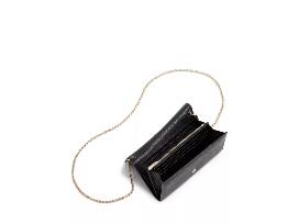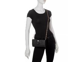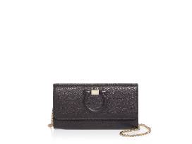 Salvatore Ferragamo Gancini City Leather Chain Wallet in Black with Gold Chain.