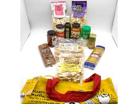 Your Reusable Trader Joe's 100 % cotton grocery bag contains a tasty sampling of their brand-name products: