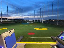 Enjoy the climate-controlled hitting bays for year-round comfort with HDTVs in every bay and throughout the sports bar and restaurant. Complimentary clubs are available or bring your own and take aim at the giant outfield targets and our high-tech balls will score themselves.