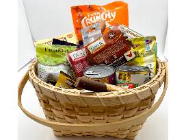 Basket includes lots of goodies for a dog: