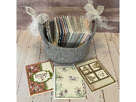 Gift basket of 30 assorted handmade greeting cards created by an Angels volunteer and avid crafter.