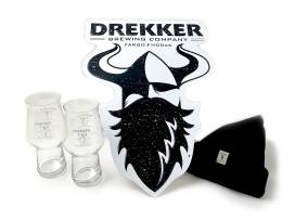 You get a bar sign, beanie, a $25 gift card, and 2 pint glasses from Drekker Brewing out of Fargo, ND!