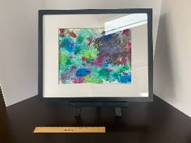 Handmade by a teen in our Landfall Youth Development program, this piece uses acrylic paint and everyday items to make an abstract piece that would look wonderful in your home or office!