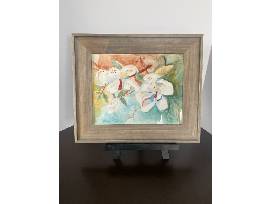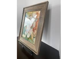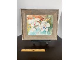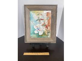 Handmade by a teen in our Landfall Youth Development program, this piece uses pencil and watercolor to create the illusion of beautiful floating flowers. A nice neutral piece, framed and ready to hang in a special location!