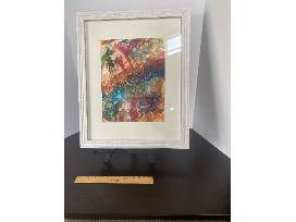 Handmade by a teen in our Landfall Youth Development program, this piece uses acrylic paint and everyday items to make an abstract piece that resembles a flowing river. Framed and ready to hang, this piece could be a perfect addition to your home!