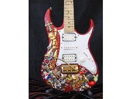 Jam out in style with The Ibanez Guitar, a full-sized playable electric guitar. This red guitar titled "Graffiti" is inspired by the street art you would find in big cities or on the subway walls. It comes with a guitar stand and a soft case. Intricately layered one jewel at a time, Art Creations by CJ offers unique vintage jewelry wall art & home decor that is Eye Candy for the Soul! www.artcreationsbycj.com.