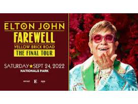 Spend an unforgettable night experiencing the off-the-charts showmanship of Elton John LIVE on Saturday, September 24th, 2022, at Nats Stadium.