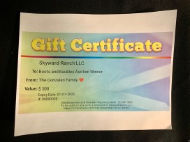 $500 gift certificate to Skyward Ranch LLC-good for any service Skyward Ranch provides (Farm sitting , house sitting , pet boarding, exotic pet boarding, drop in visits and dog walking)