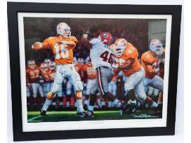This exquisite lithograph by Daniel A. Moore features Peyton Manning, Super Bowl XLI MVP, during his collegiate days at the University of Tennessee. This offer is for a framed print. It is hand signed by Daniel Moore and comes with a Seal of Authenticity.