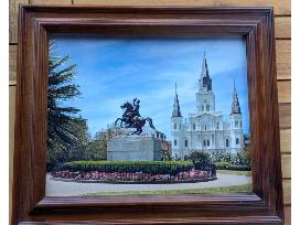 A picture of Jackson Square taken by photographer Jose Garcia, a Fleur Dis Lis plaque, and a Fleur Dis Lis bottle stopper are also included in the basket.