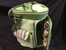 Wine bottle Cooler - holds two bottles of wine. Comes with two plastic wine glasses, napkins, small cutting board and cheese spreader