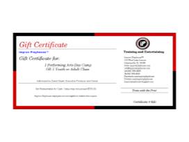 This winning bidder receive a gift certificate for 1 Performing Arts Day Camp OR 1 Youth or Adult Class at Improv Playhouse in Libertyville.