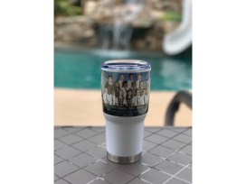 While you sit in your new chair enjoy a beverage in a personalized tumbler featuring the 5th grade class.