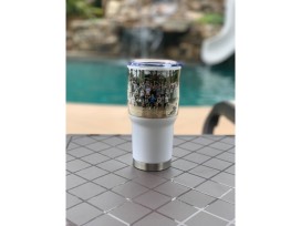 While you sit in your new chair enjoy a beverage in a personalized tumbler featuring the 5th grade class.