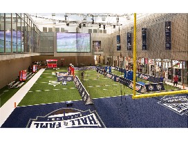 See your team's helmet light up on the wall, test your arm skills as a QB, or call a real-time play in the ultimate college football immersive experience!