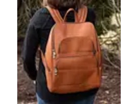 9The elegant Julia backpack is great for work, play and travel. Made from top grain cowhide leather and durable mocha brown nylon lining, it has room for books, pens, phones - and fits a 15" laptop. It is accented with antique brass-finish hardware.