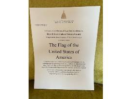 The 3' x 5' flag will be accompanied by an official certificate signed by Congressman Ferguson and the Architect of the U.S. Capitol.