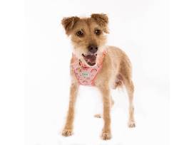She communicates through the cutest little whimpers, whether she's hungry, or just needs to go outside for a potty break. She gets super excited when it's time for a walk. She seems absolutely content with a short stroll to the end of the block and back, but not before sniffing every flower/plant in her path-and then coming home for a drink of water and plopping on her bed for her nap. This scruffy sweetie would be the perfect Playa Pup if you ask us!