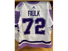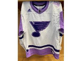 Bid on #72 Justin Faulk's warm-up worn Hockey Fights Cancer jersey from warm-ups of the Blues vs. Vegas Golden Knights game on November 22, 2021.