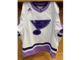 Bid on #70 Oskar Sundqvist's warm-up worn Hockey Fights Cancer jersey from warm-ups of the Blues vs. Vegas Golden Knights game on November 22, 2021.