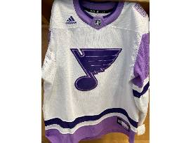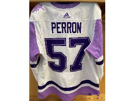 Bid on #57 David Perron's warm-up worn Hockey Fights Cancer jersey from warm-ups of the Blues vs. Vegas Golden Knights game on November 22, 2021.