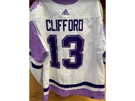 Bid on #13 Kyle Clifford's locker-room issued Hockey Fights Cancer jersey from warm-ups of the Blues vs. Vegas Golden Knights game on November 22, 2021.