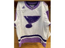 Bid on #46 Jake Walman's locker-room issued Hockey Fights Cancer jersey from warm-ups of the Blues vs. Vegas Golden Knights game on November 22, 2021.