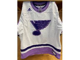 Bid on #37 Klim Kostin's warm-up worn Hockey Fights Cancer jersey from warm-ups of the Blues vs. Vegas Golden Knights game on November 22, 2021.
