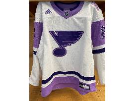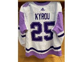 Bid on #25 Jordan Kyrou's warm-up worn Hockey Fights Cancer jersey from warm-ups of the Blues vs. Vegas Golden Knights game on November 22, 2021.