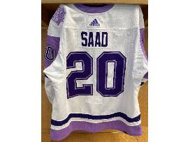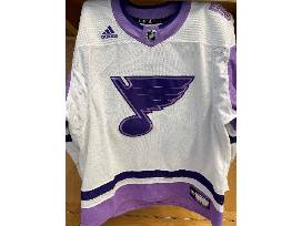Bid on #20 Brandon Saad's warm-up worn Hockey Fights Cancer jersey from warm-ups of the Blues vs. Vegas Golden Knights game on November 22, 2021.