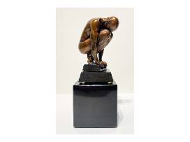 Kevin Pettelle, Crouching Man 43/50, cast bronze on black marble pedestal, 11" x 4" x 4"