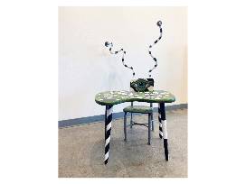 Jules Anslow, One Small Step, acrylic & mixed media on wood with recycled elements, 20" x 25" x 18", 48" x 23" x 12"