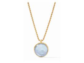 A grand shimmering mother of pearl pendant. On the reverse side, a coin featuring a knight on horseback. The chain doubles, and the pendant becomes a statement necklace.