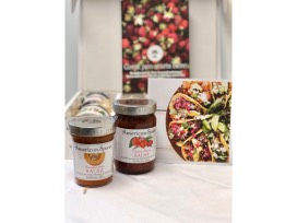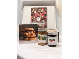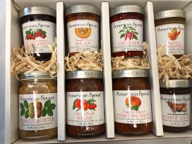 This collection of jams, jellies, and sauces will spice up any dish in your kitchen! These products are displayed in a gift box by American Spoon featuring: