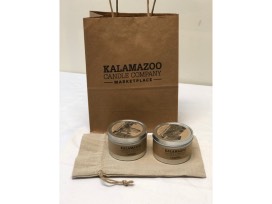 Two Candles in lidded tins from Kalamazoo Candle Company